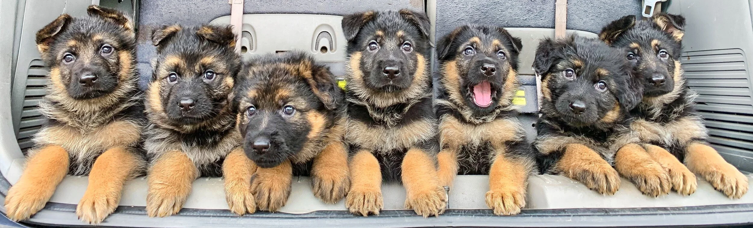 Each one of our puppies boasts a pedigree of 45 Continental VA1 Siegers, the highest Schutzhund award attainable. We specialize in family German Shepherds ingrained with three central elements: socialization, trainability, and confidence. All of our pups are socialized from birth, and are introduced to people, places, noises, animals, and children. The Puppies are raised in our home as a family. They get plenty of sunshine on our 12 acres every day and are tucked away in their crates at night, which effectively house-trains and crate-trains them for their new homes.