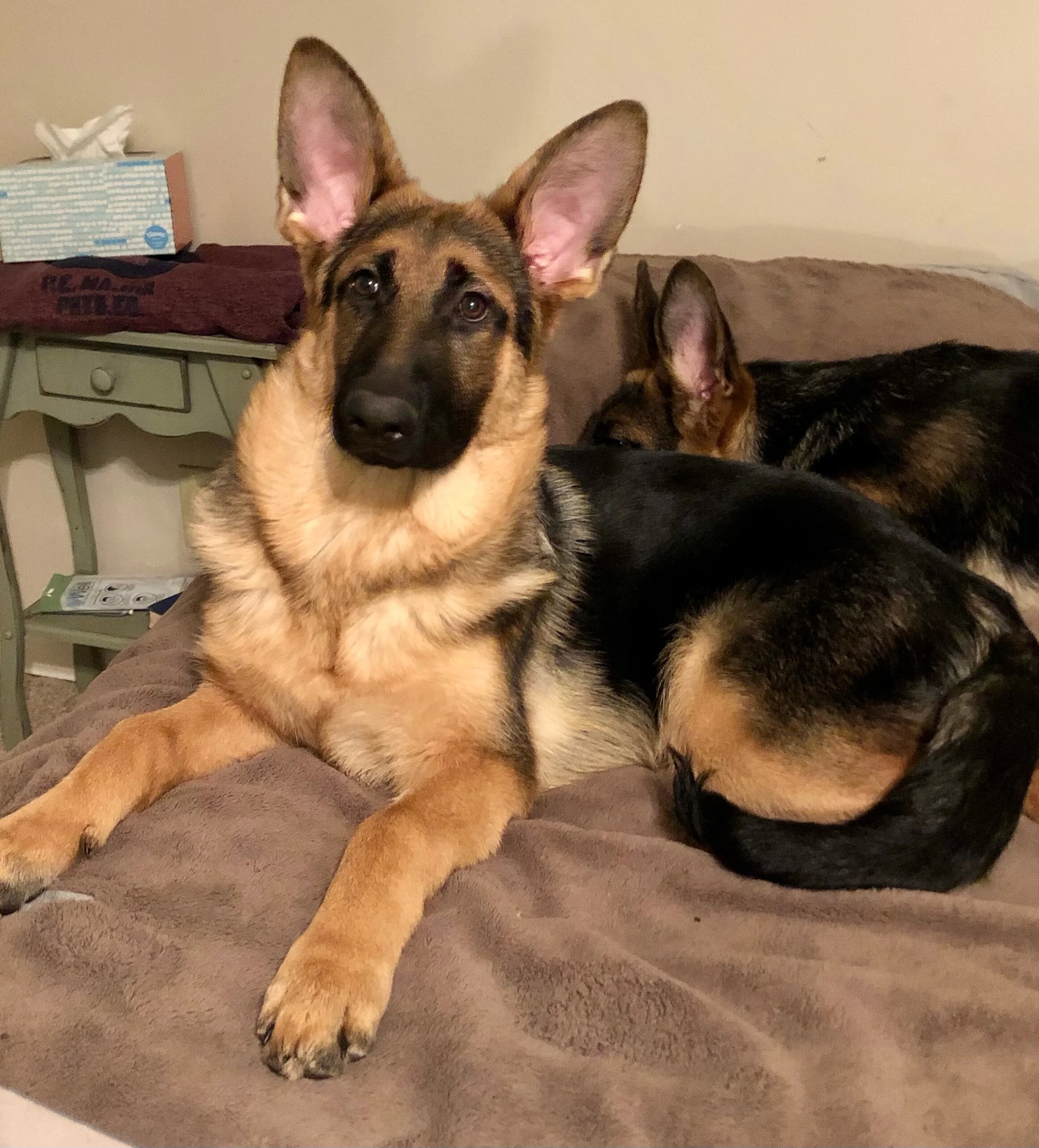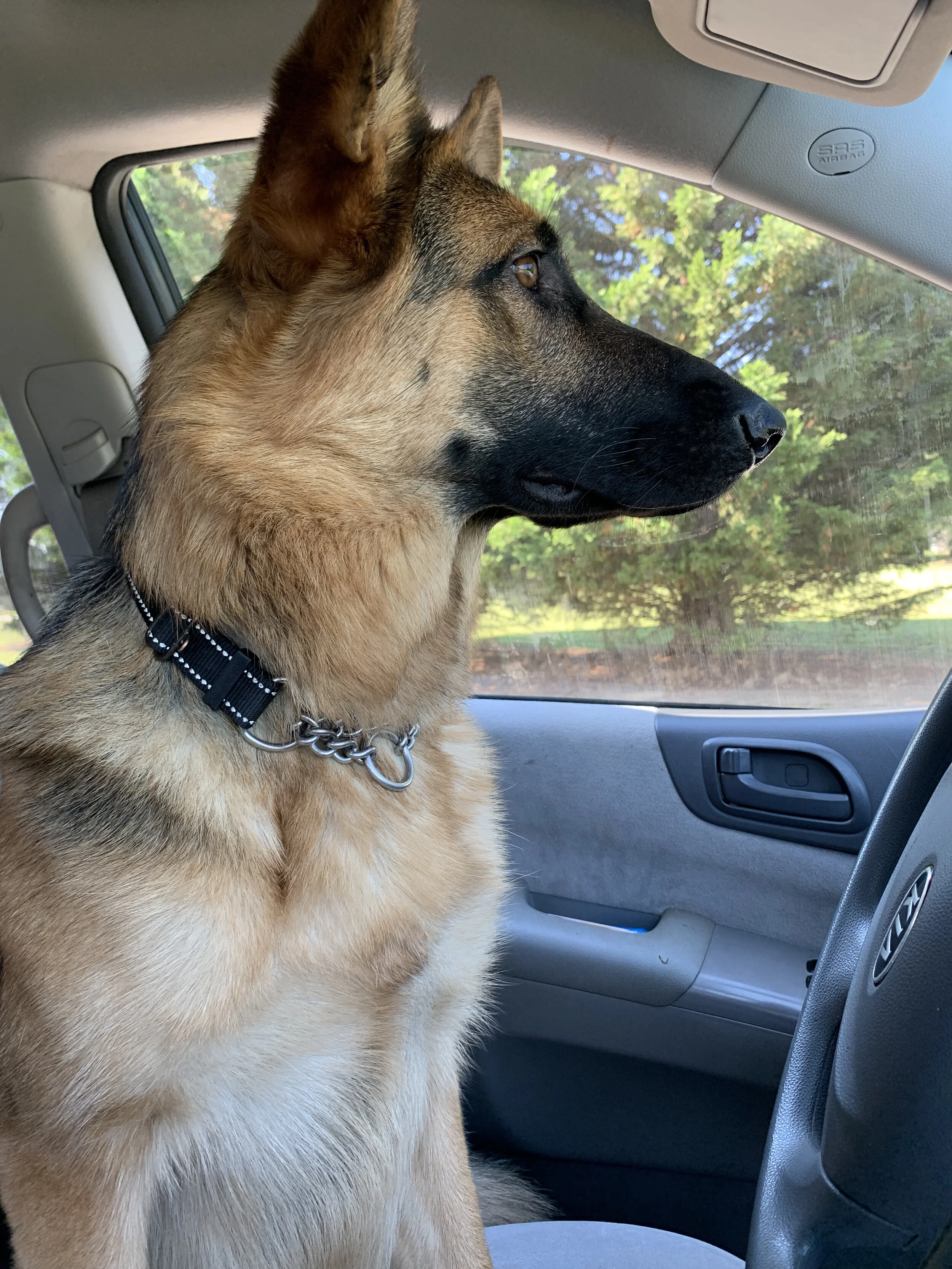 Christa is our muscular, athletic and beautiful dam. She has matured into a simply remarkable GSD from mother to protector. She is very affectionate, and loves all people. Christa comes from a long line of working GSDs in herding, search and rescue, law enforcement, and many champions in show, including her German-imported sire, Uran who was born and trained in Germany, and was awarded his V. (excellent) rating at the World Seiger Show in Germany. This breeding took place just a week after he arrived in America.